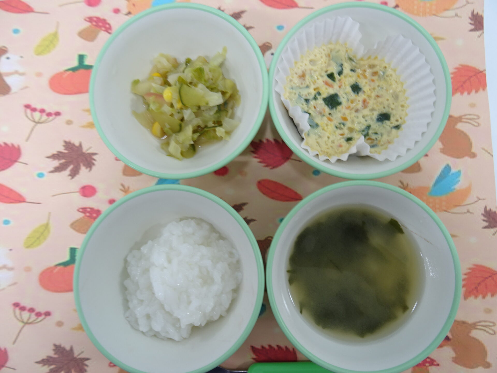 11月4日㈫ 離乳食 全粥 ほうれん草オムレツ リンゴ入りコールスローサラダ みそ汁
