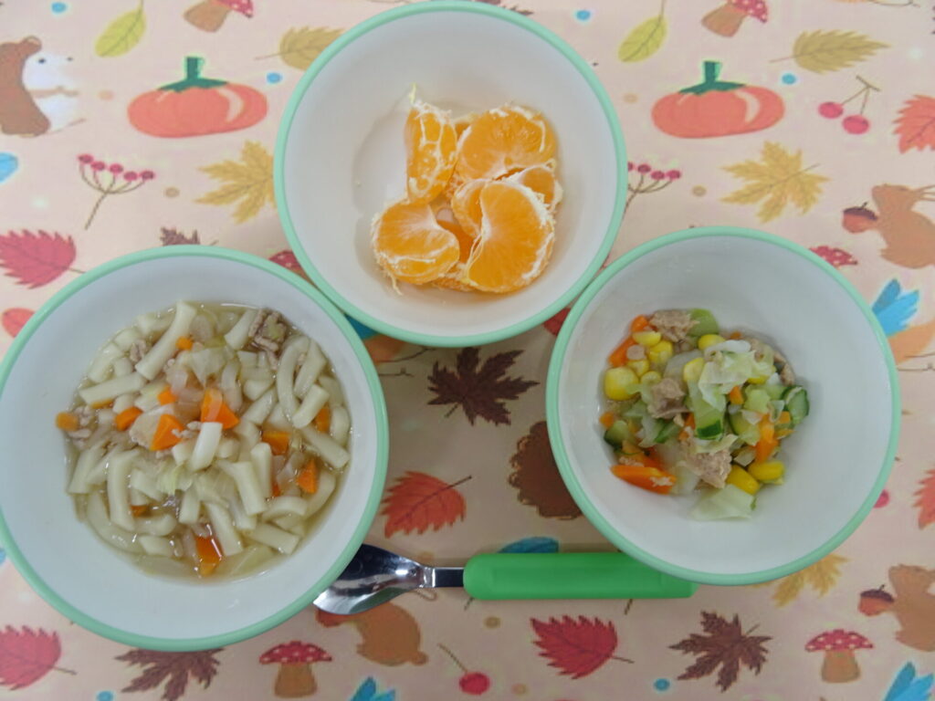 11月5日㈬ 離乳食 醤油うどん ツナポテトサラダ みかん