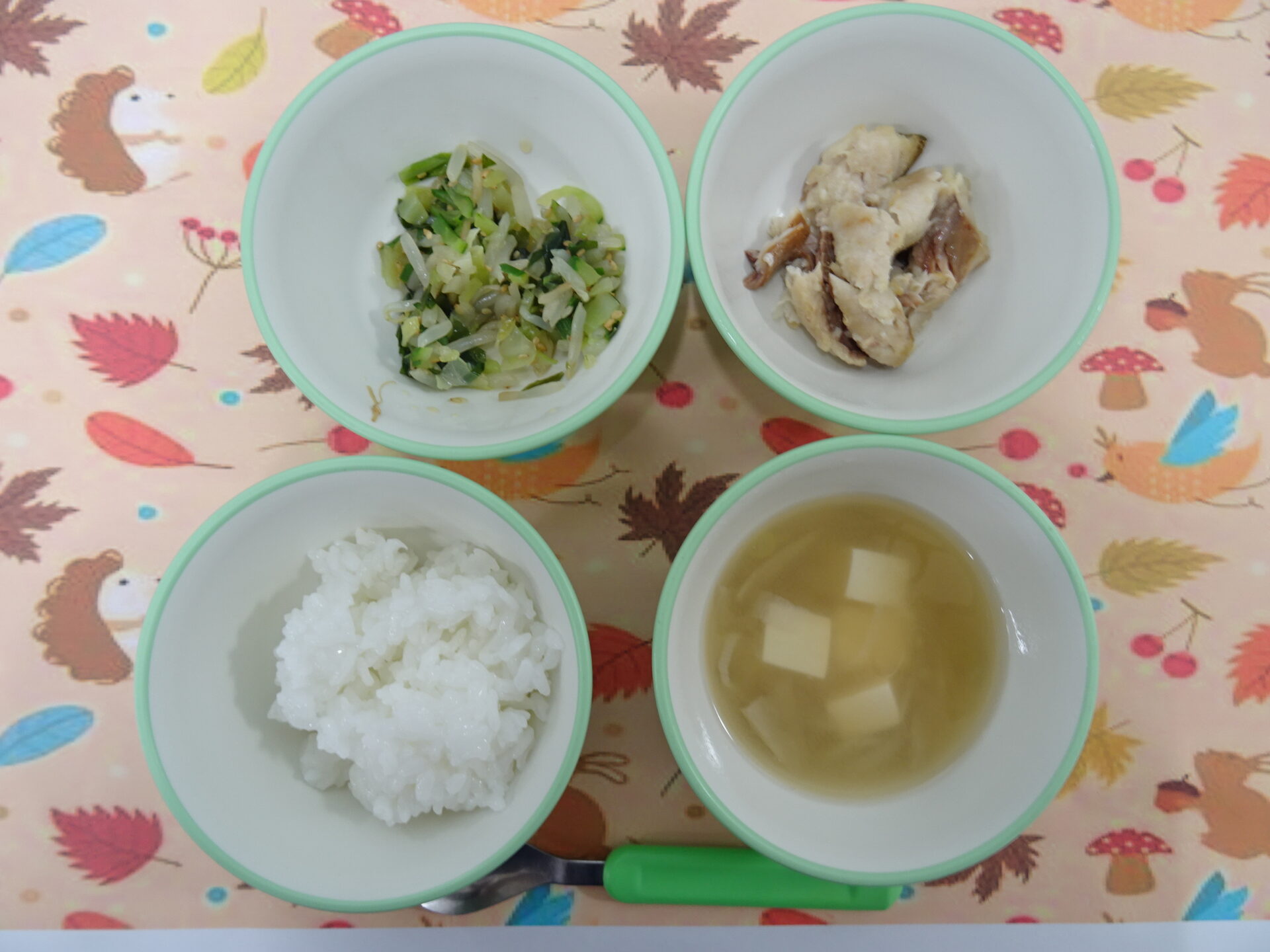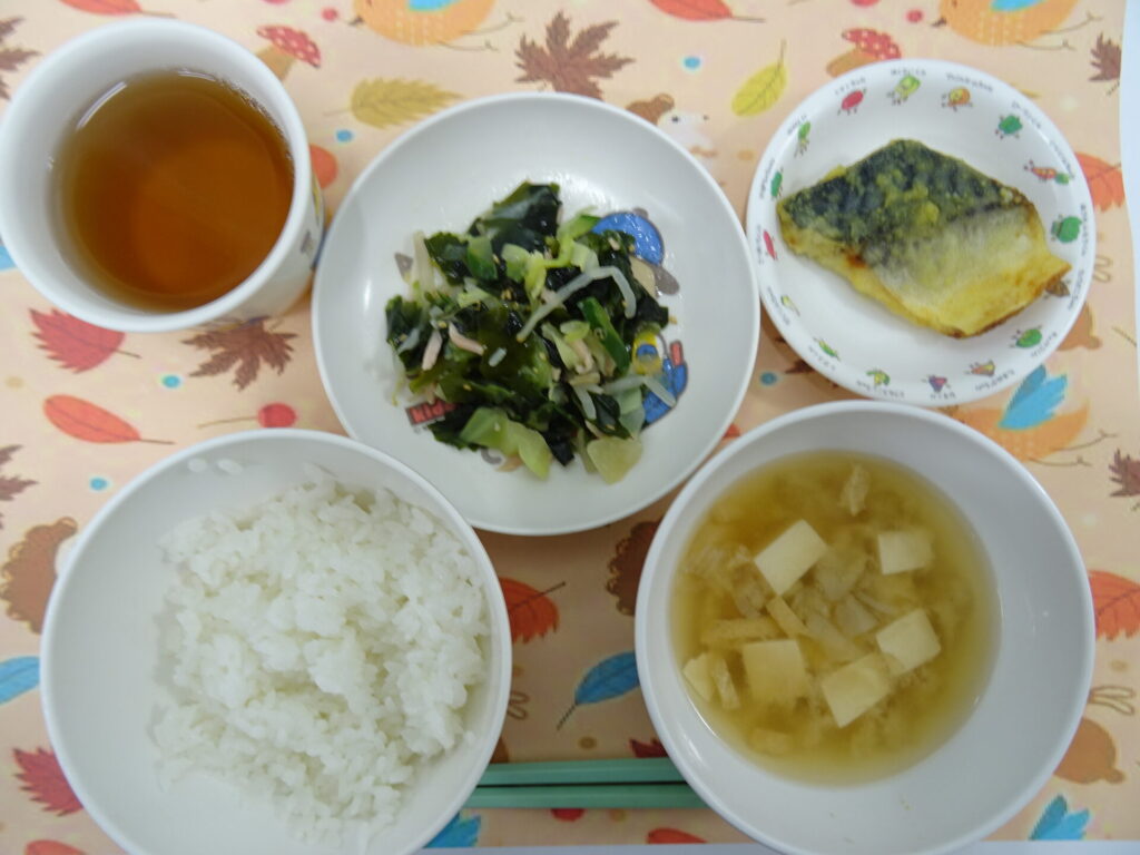 11月6日㈭ 離乳食 軟飯 さばのムニエル ワカメの中華サラダ みそ汁