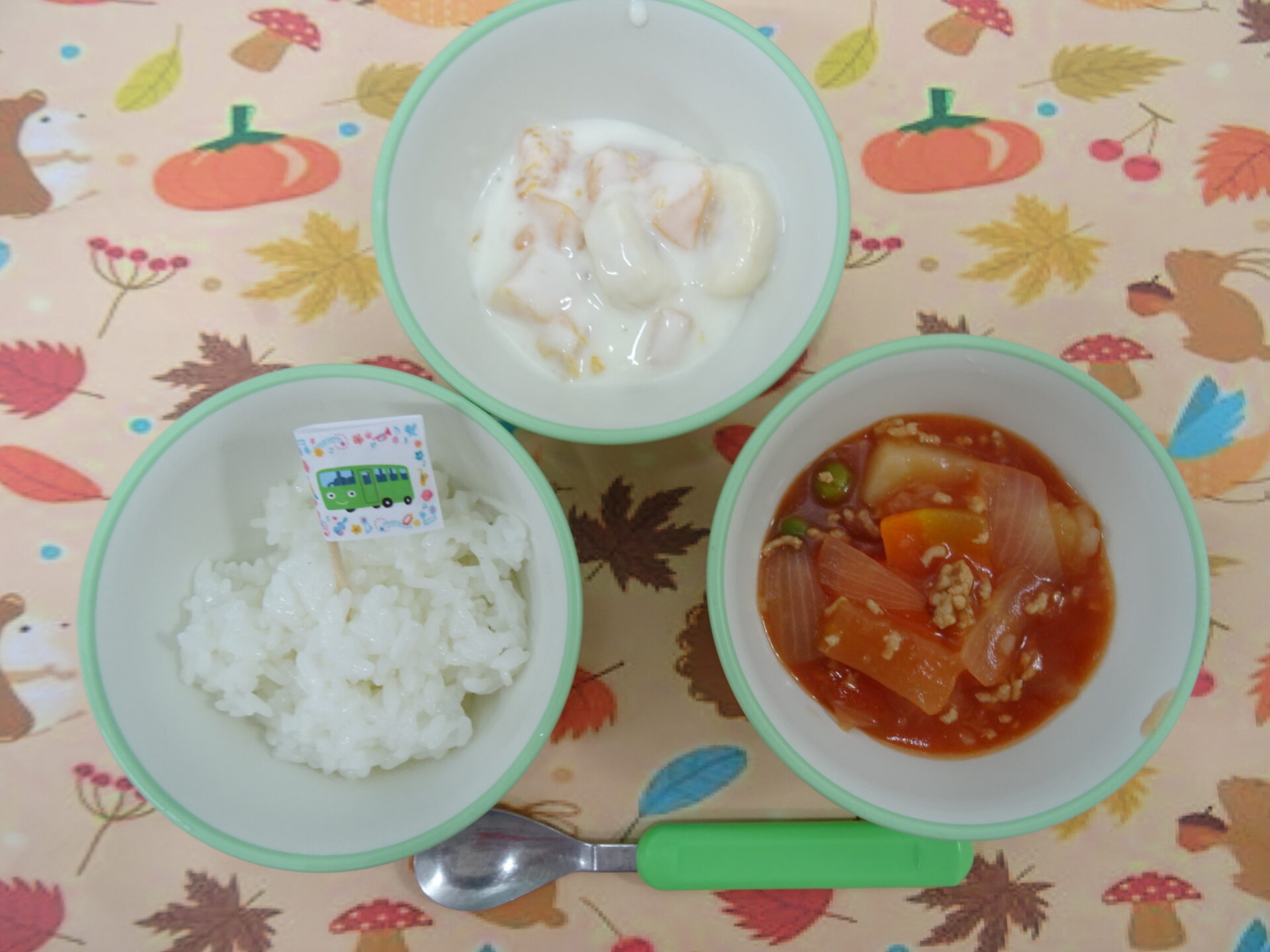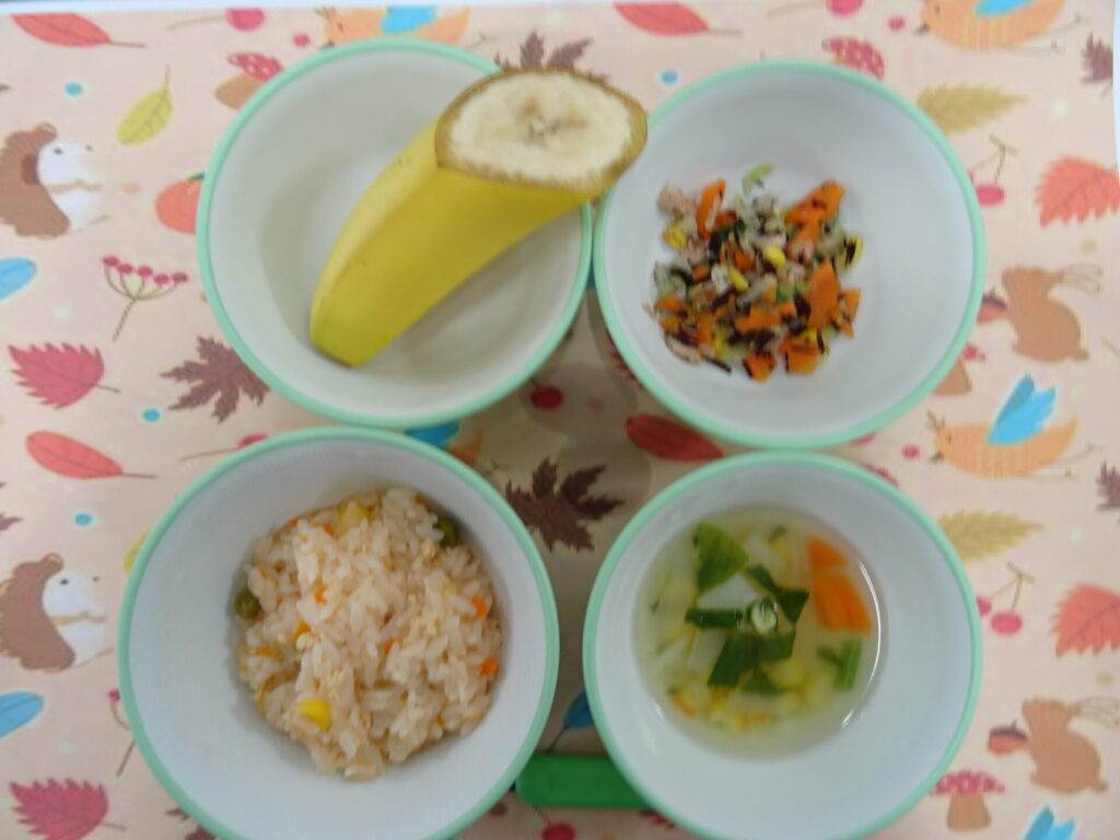11月19日㈬ 離乳食 Mステ応援トマトあんかけライス フルーツヨーグルト
