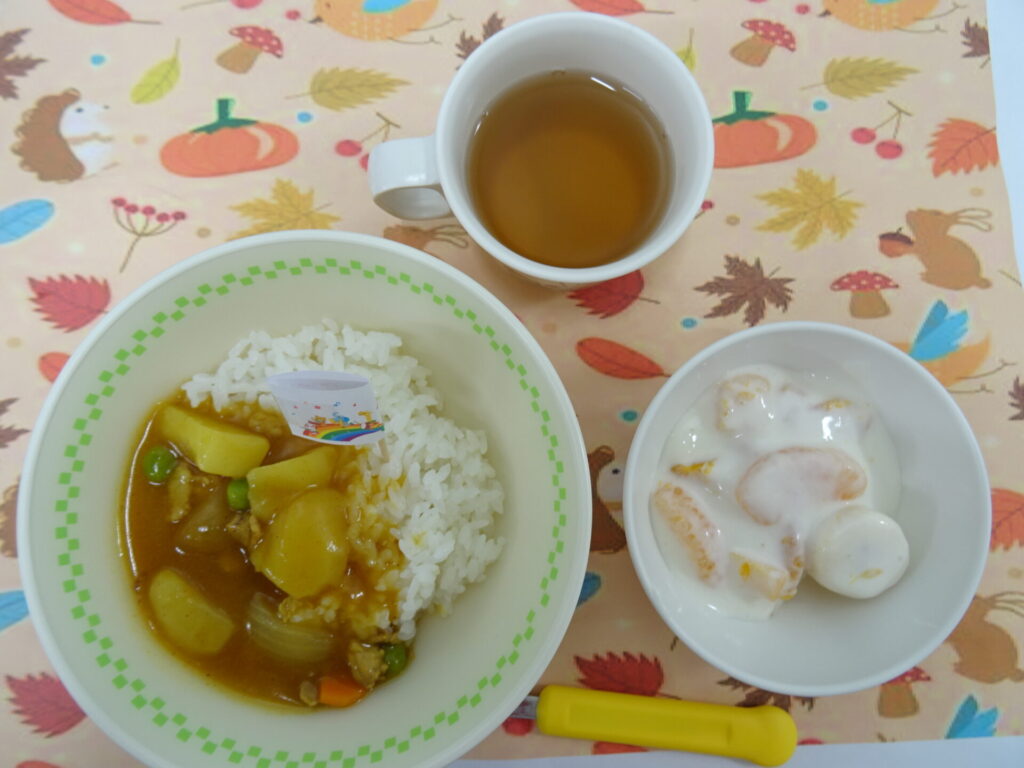 ホクホクのお芋が美味しい季節ですね。きのこや南瓜、柿など多くの食べ物が旬を迎えています。旬の食べ物を美味しく頂きながらスクスク元気に育って欲しいです。