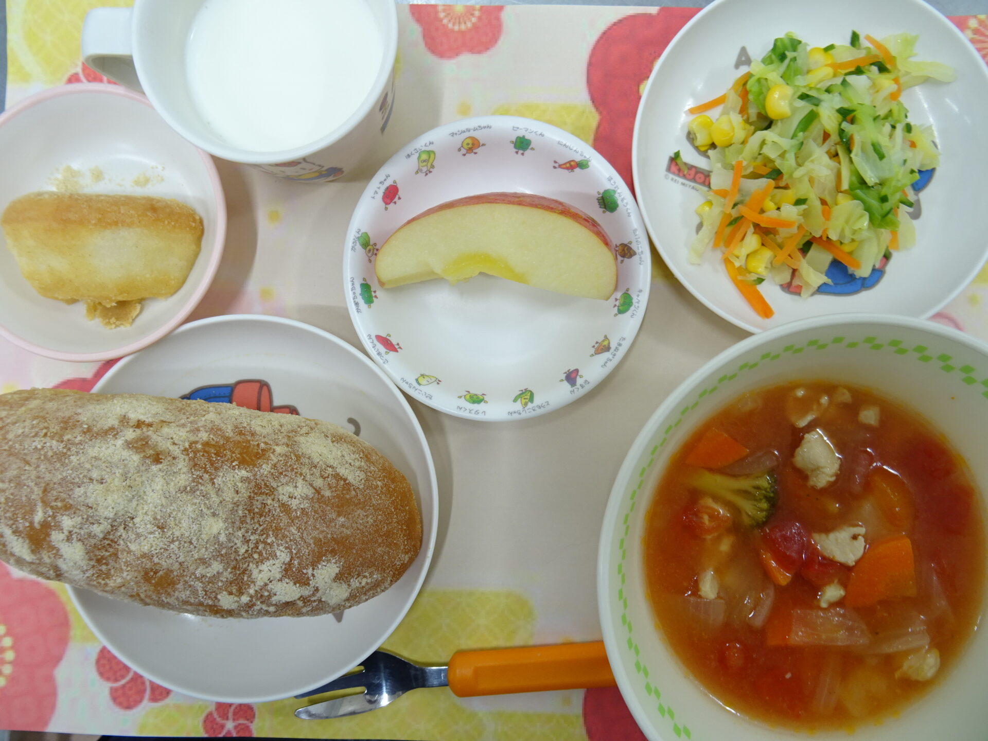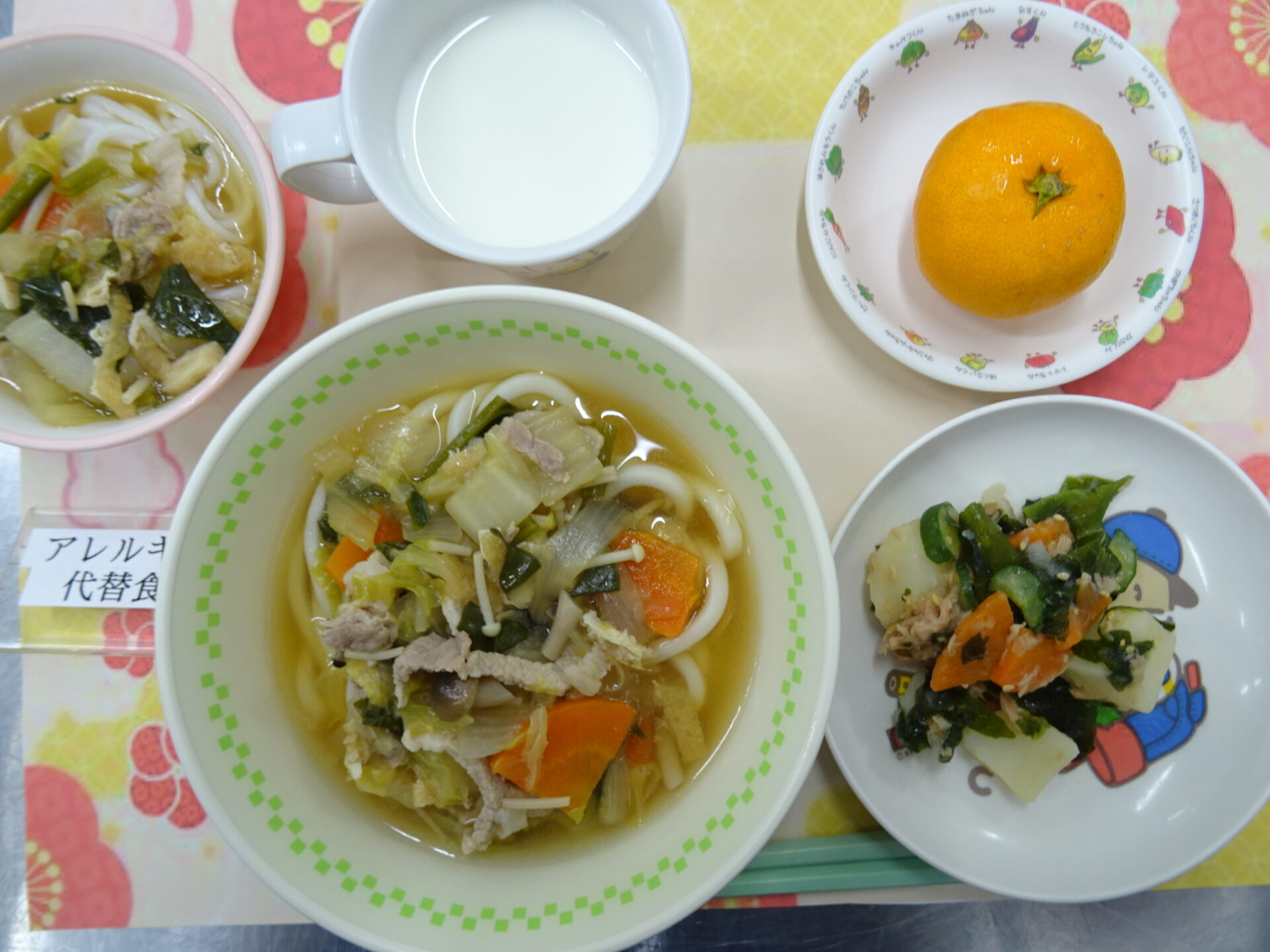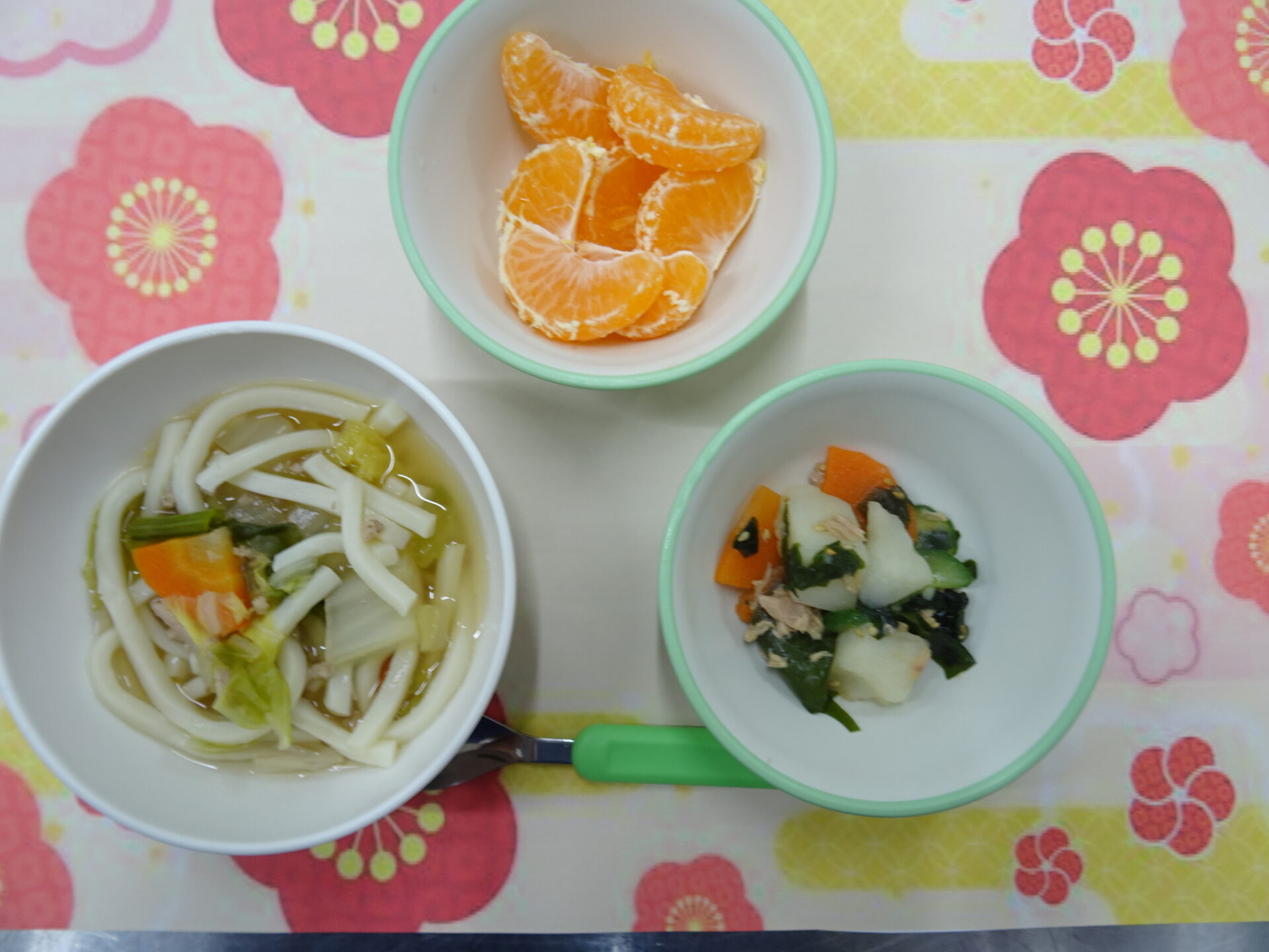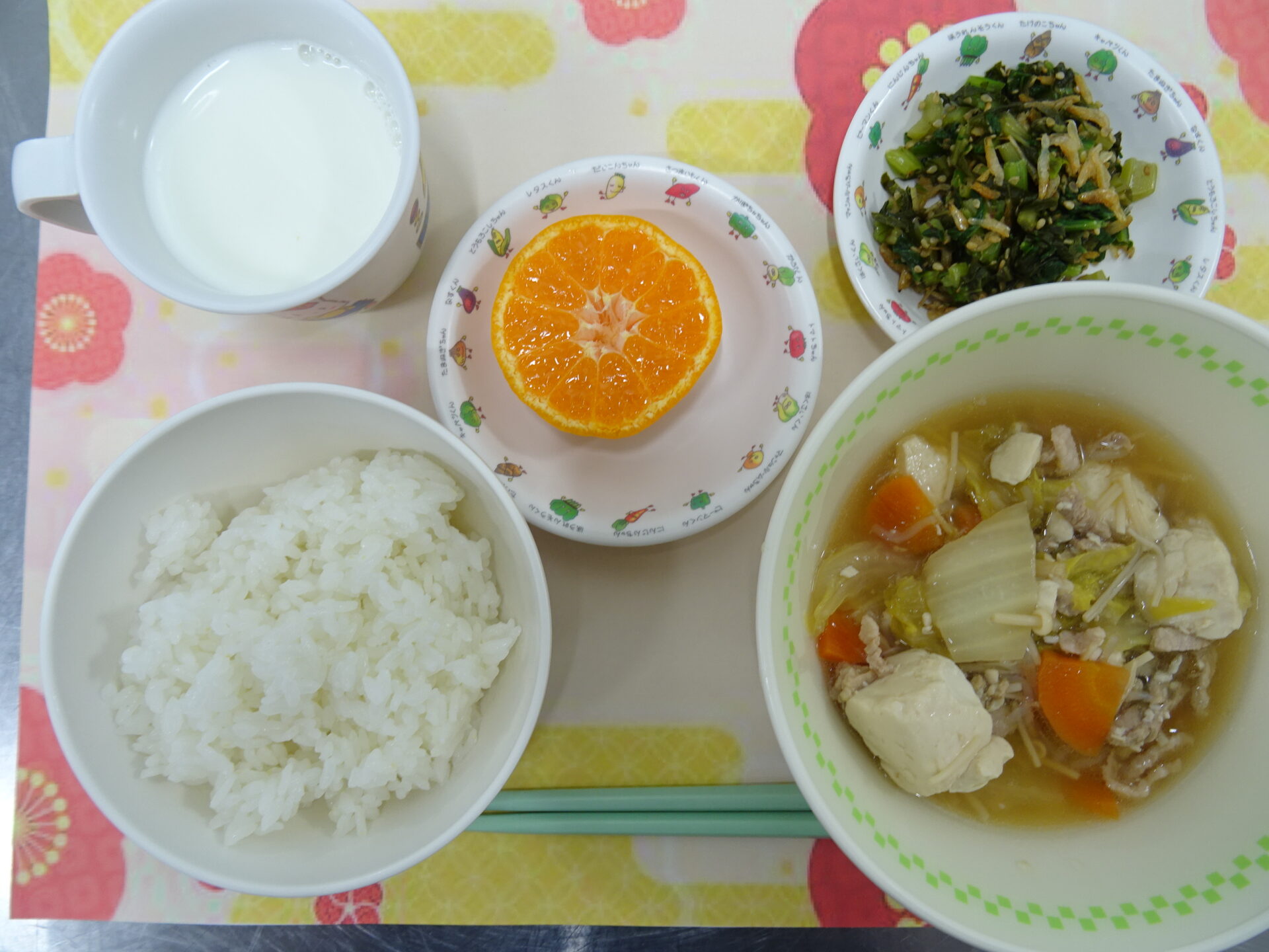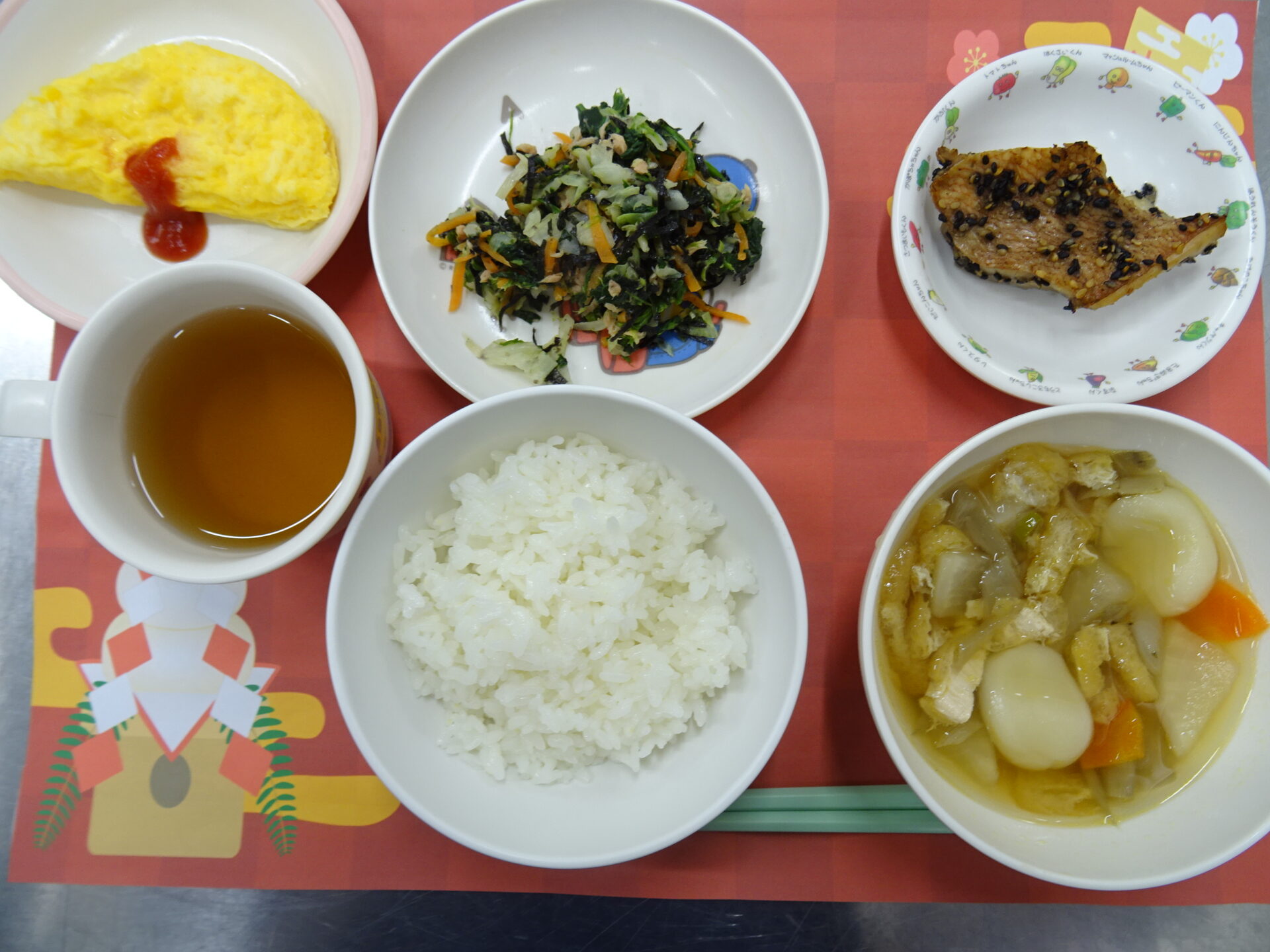 冬を感じながら、日々遊びを楽しんでいる子どもたち。体調を崩しやすい時期なので栄養たっぷりの給食を食べて元気に過ごして欲しいなと思っています。今週の給食を紹介