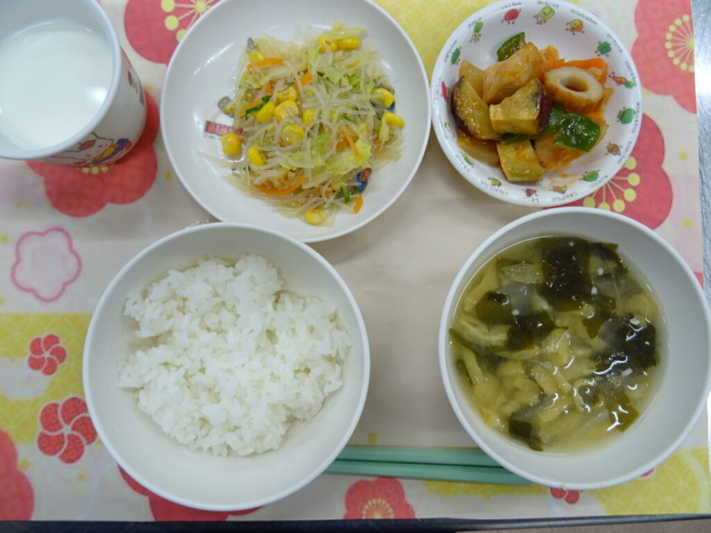 1月13日㈫ 鶏肉とちくわの甘辛炒めは先生のリクエストメニューです♪ ご飯 鶏肉とちくわの甘辛炒め パンサンスー みそ汁 牛乳