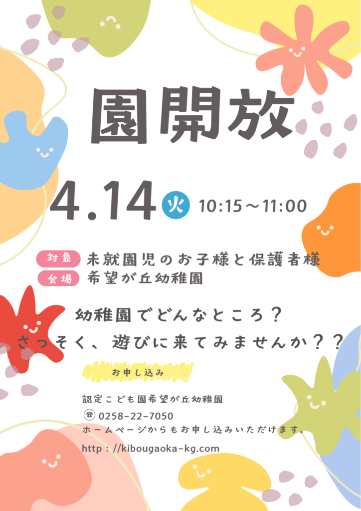 どちらも園のホームページかお電話(0258-22-7050)でお申し込みください。